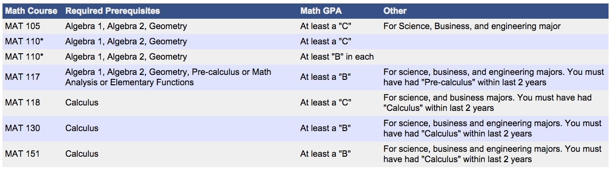 Otherwise, you must begin at a lower level math course to prepare for the required entry-level course.